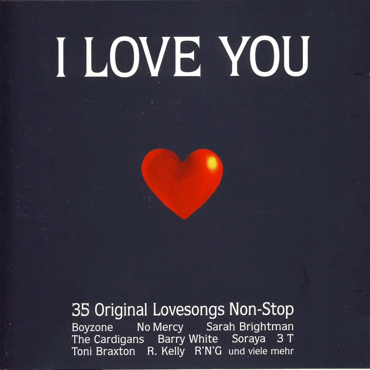 2x CD Album Various Artists - I Love You, Mixed by AC 16, Zustand CD VG+ Hülle VG+; Made in Germany 1997 Polystar 553 582-2, 583-2, 584-2, Tracks The Dreamers - I Love You "Intro" 1:21, Sarah Brightman - Time To Say Goodbye 4:05, Soraya - Suddenly 4:01, No Mercy - When I Die 4:28, Peter André - I Feel You 3:54, R. Kelly - I Believe ICan Fly 4:42, Barry White - Just The Way You Are 4:46, Gloria Estefan - I'm Not Giving You Up 4:20, Terence Trent D'Arby - Delicate 4:16, Boyzone - Words 4:03, Gary Barlow - Forever Love 4:36, Curtis Stigers - I Wonder Why 4:25, INXS - Beautiful Girl 3:28, Tina Turner - In Your Wildest Dreams 5:34, East 17 Feat. Gabrielle - If You Ever 4:14, Nils Lofgren - Valentine 6:15, Assembly - Never Never 3:41, Man Doki with Bobby Kimball - Rainbow Angel 3:45, R'n'G - Rhythm Of My Heart 3:41, Toni Braxton - You'er Makin' Me High 4:07, Damage - Love Il Love 4:06, 3 T - I Need You 3:55, Dune - Who Wants To Live Forever 3:54, Backstreet Boys - Anywhere For You 4:40, Randy Crawford - Purple Rain 5:49, George Michael - Heal The Pain 4:37, Oleta Adams - Get Here 4:32, Intrigue - If You've Ever Been In Love 3:40, Green Camp Feat. Shondell - One Day I'll Fly Away 3:28, Tony! Toni! Toné! - It Never Rains In Southern California 4:56, Neneh Cherry - Woman 4:26, Smoke City - Underwater Love 4:00, The Cardigans - Lovefool 3:15, Gabrielle - Walk On By 3:18, E-40 - Things'Il Never Change 4:11, Artur - Time After Time 3:45, The Dreamers - I Love You "Outro" 1:30