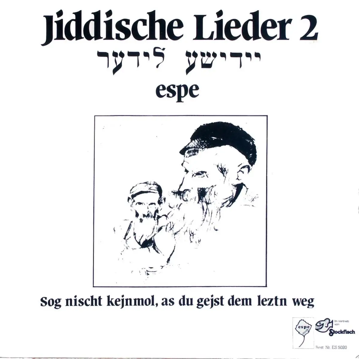 LP Album Various - Jiddische Lieder 2, incl. 9 pages insert, Zustand Platte VG+ Hülle VG+; Made in Germany 1979 Espe Musik ES 5020, Tracks Sog Nischt Keijnmol, As Du Gejst Dem Leztn Weg 2:42, Ojf Dem Bojdm Schloft Der Dach 2:45, In Kamf 2:14, Arbajter-Romans 1:56, Izik Witenberg 3:14, In Drojsn Gejt A Drobinker Regn 3:08, Amol Is Gewen A Jidele 1:43, Birobidschan 2:57, Chazkele, Chazkele 3:39, Achzig Er Un Sibezig Si 1:43, Der Filosof 2:10, Schojn Schtil Is In Gesl 3:22, Wos Wet Sajn As Meschiach Wet Kumen? 3:41, Scha, Schtil 3:08, Joschke 2:11