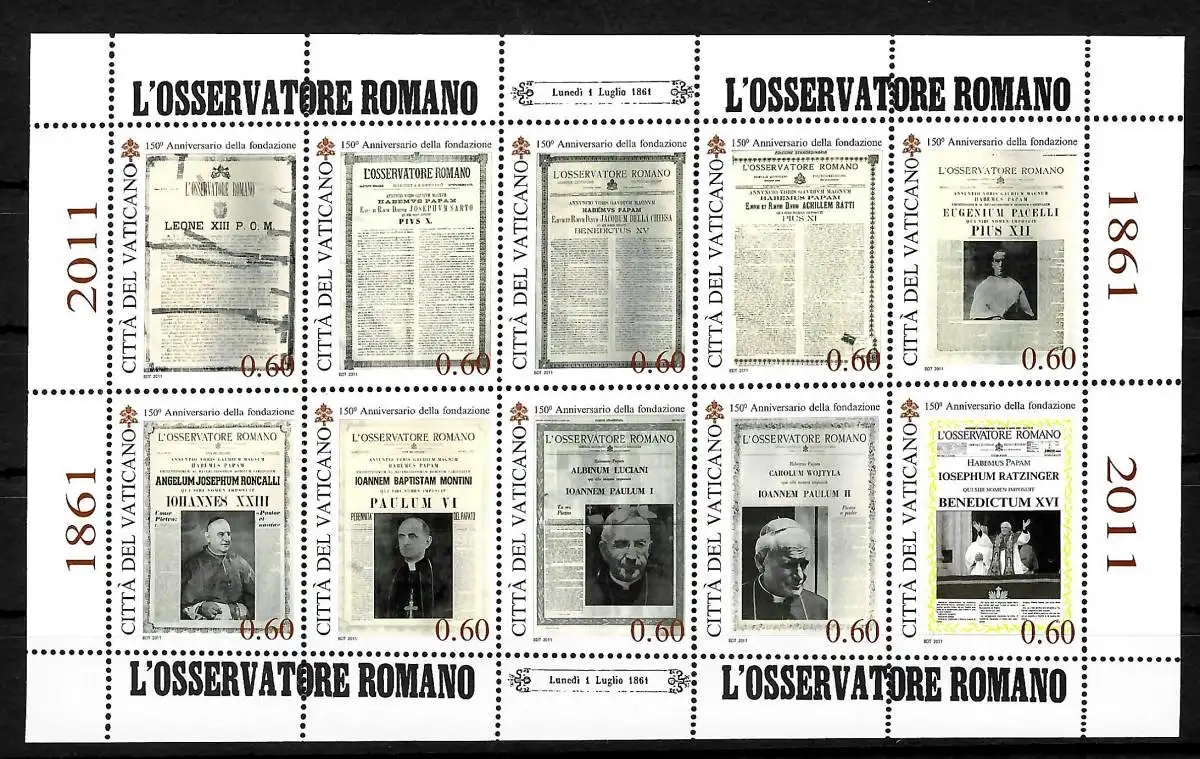 Vatikan: 150 Jahre Zeitung des Heiligen Stuhls: L' Osservatore Romano, #1700-09