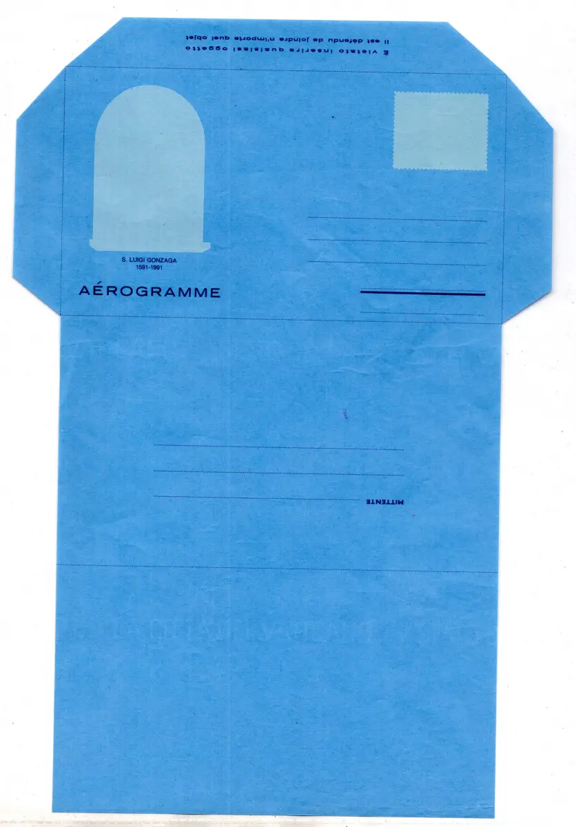 Postkarte - Vatikan Aerogramm Lire 800 S. Luigi Gonzaga (Kat. Filagrano Nr. A 29c) - Sorte ohne Stempel- und Vignettendruck - neu in sehr gutem Erhaltungszustand - Selten Cod.1928/WEB
