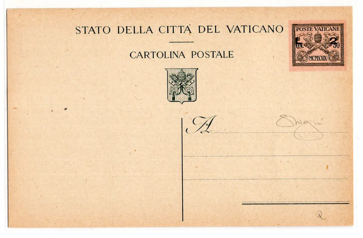 Postkarte - - Vatikan - Postkarte Lire 2 auf Cent. 50 Filagran Katalog Nr. 4 - neu perfekt - selten - Raybaudi Zertifikat Cod. 2725/WEB