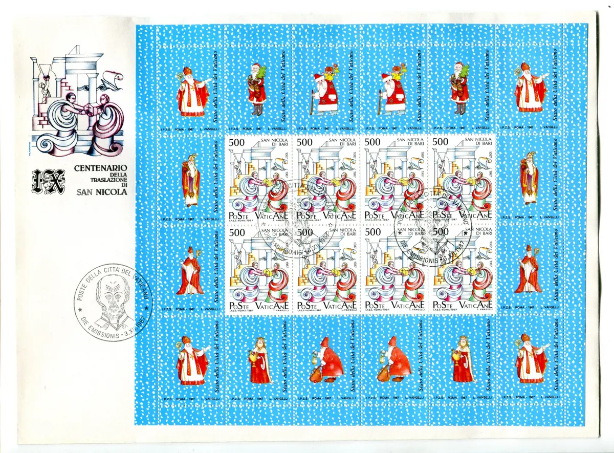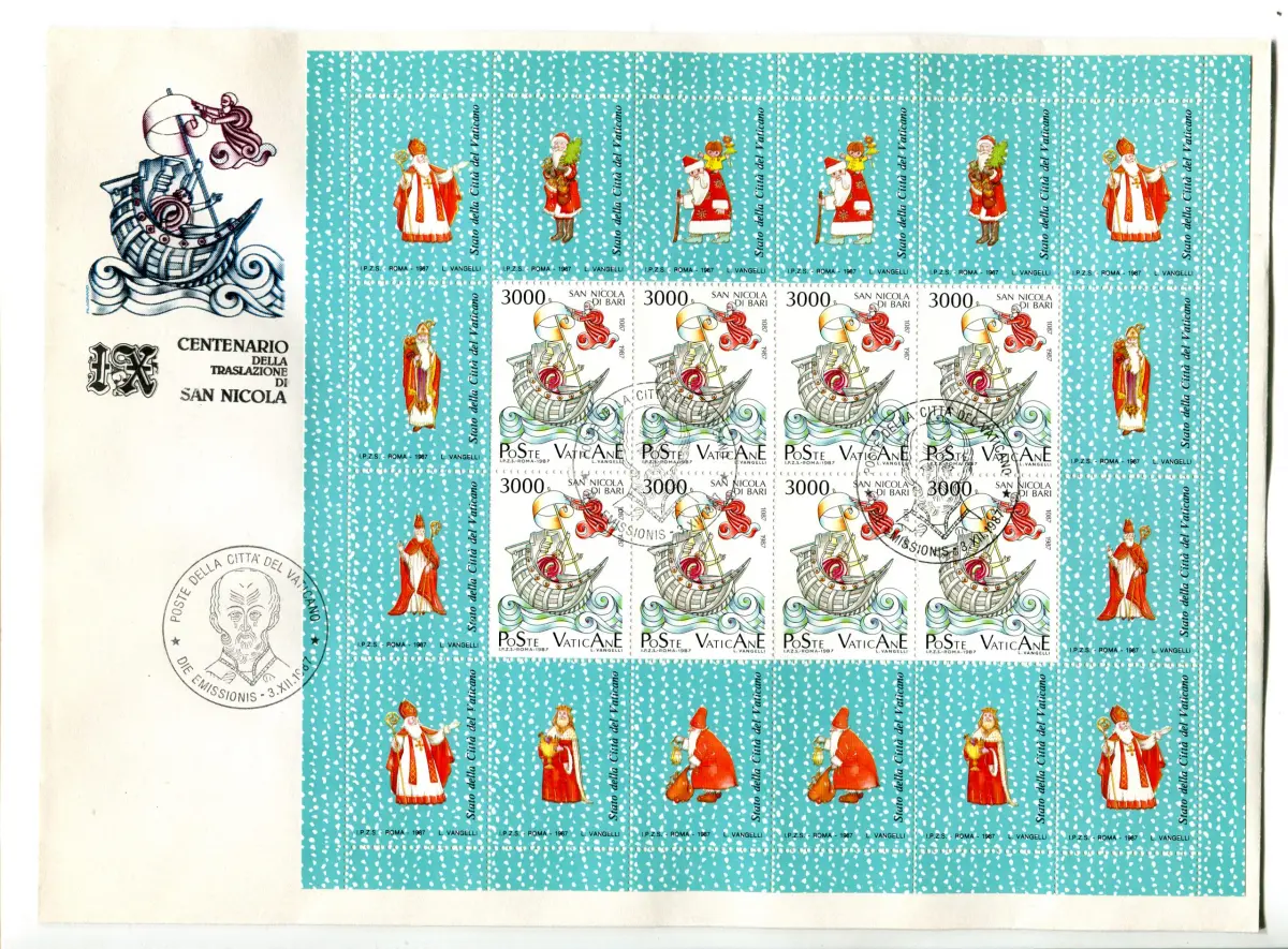 Vatikan - Nikolaus 1987 Bogen auf Umschlägen FDC 1 Umschläge - Zettel San Nicola - Die drei Zettel auf drei Umschlägen FDC - NOn common - Cod. 1546/WEB