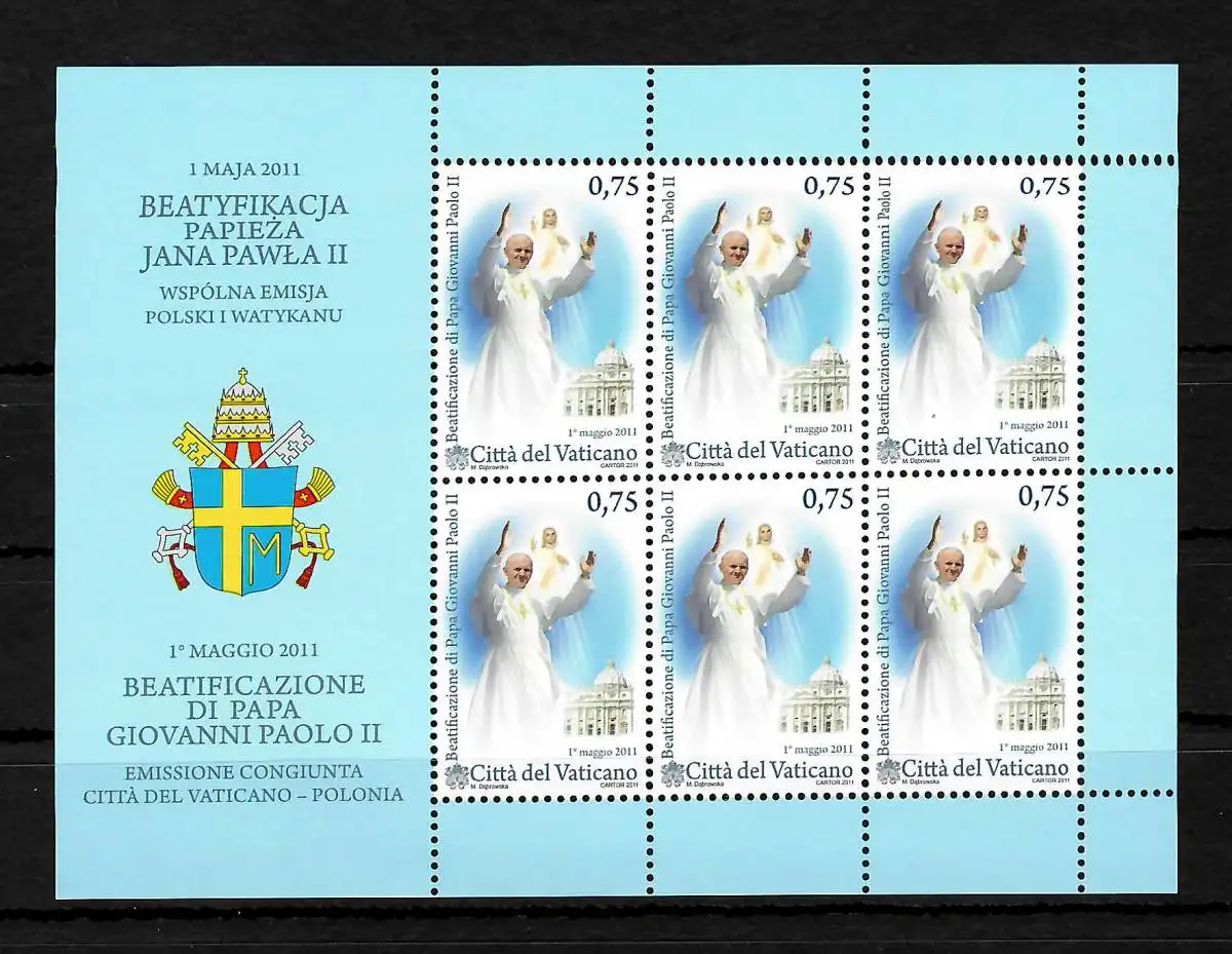 Vatikan: Seligsprechung von Papst Johannes Paul II, Kleinbogen, #1699, **