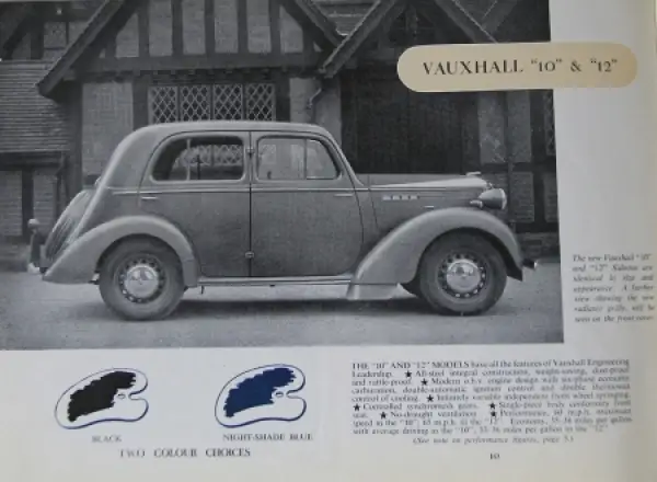 Vauxhall 10hp - 14hp Modellprogramm 1938 Automobilprospekt (4038)