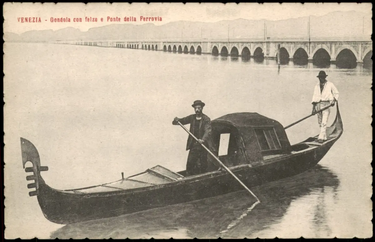 Venedig Venezia Venice Gondola con felze e Ponte della Ferrovia 1922