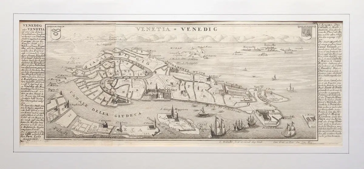 [Venedig, Italien]. - Gabriel Bodenehr der Ältere (1664-1758), deutscher Kartograph, Kupferstecher und Verleger in Augsburg - Linkes Segment angesetzt, rechts eine Bugfalte. Seltenes Blatt