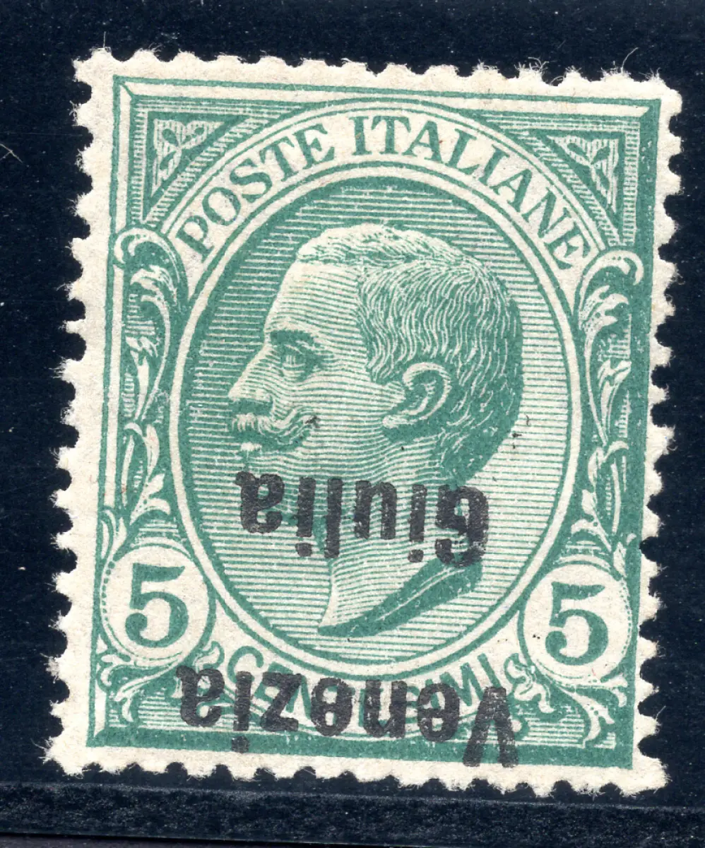 Vollgummi MNH - Venezia Giulia Cent. 5 Löwen Nr. 21a mit umgedrehtem Aufdruck, neu perfekt mit Vollgummi Katalog Euro180 Cod.2155/WEB