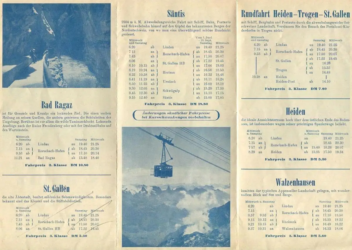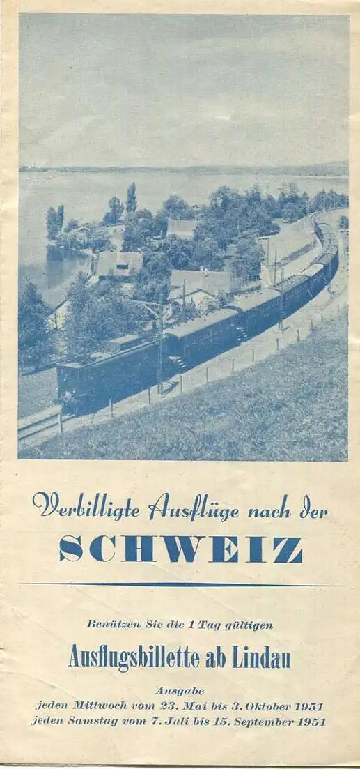 Verbilligte Ausflüge nach der Schweiz 1951 - Faltblatt mit 5 Abbildungen
