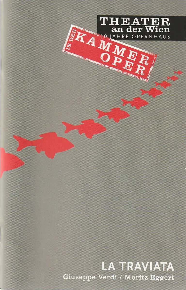 Melodramma in drei Akten. Musik: Giuseppe Verdi remixed von Moritz Eggert. Orchestrierung von Moritz Eggert & Jacopo Salvatori. Neuproduktion des Theater an der Wien in der Kammeroper. Eine Koproduktion mit Operafront Amsterdam. Musikalische Leitung: Kalle Kuusava. Inszenierung: Lotte de Beer. Ausstattung & Licht: Clement & Sanou. Video: Finn Ross. Mitwirkende: Frederikke Kampmann, Julia Henao Gonzalez, Matteo Loi, Anna Marshaniya, Florian Köfler - Theaterprogramm, Opernprogramm, Ballettprogramm, Musicalprogramm, Konzertprogramm, Theatermemorabilia, Programmhefte Sammlung, deutsche Theatergeschichte.