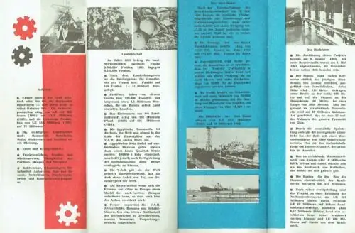 sehr guter Zustand, geringe Gebrauchs- und Alterungsspuren, Die von 1958 bis 1961 bestehende Vereinigte Arabische Republik (VAR ...) war ein Zusammenschluss der arabischen Staaten Ägypten und Syrien. Die Union wurde am 1. Februar 1958 begründet. Ihr schloss sich am 8. März 1958 das Königreich Jemen (Nordjemen) in loser Konföderation an, diese firmierte unter dem Namen Vereinigte Arabische Staaten. Die Union zerbrach mit dem Austritt Syriens am 28. September 1961 und Nordjemens im Dezember 1961. Ägypten behielt den Namen Vereinigte Arabische Republik nach deren Ende noch bis zum Jahr 1972 bei. (Wikipedia) dieser Prospekt der DDR beschreibt das Land und die Handelsbeziehungen zwischen der DDR und Ägypten, er ist zwar undatiert, aber der Text läßt sich ziemlich exakt auf 1966 datieren, es gibt auch keine Angaben zu Herausgeber oder der Druckerei - Allgemeines - Industrie - Landwirtschaft - Der Suez-Kanal - Der Hochdamm - Touristische Erleichterungen - Handelsaustausch zwischen der VAR und der DDR, Papier, ca. 8,5 x 23, 8 Seiten mit 10 Bildern