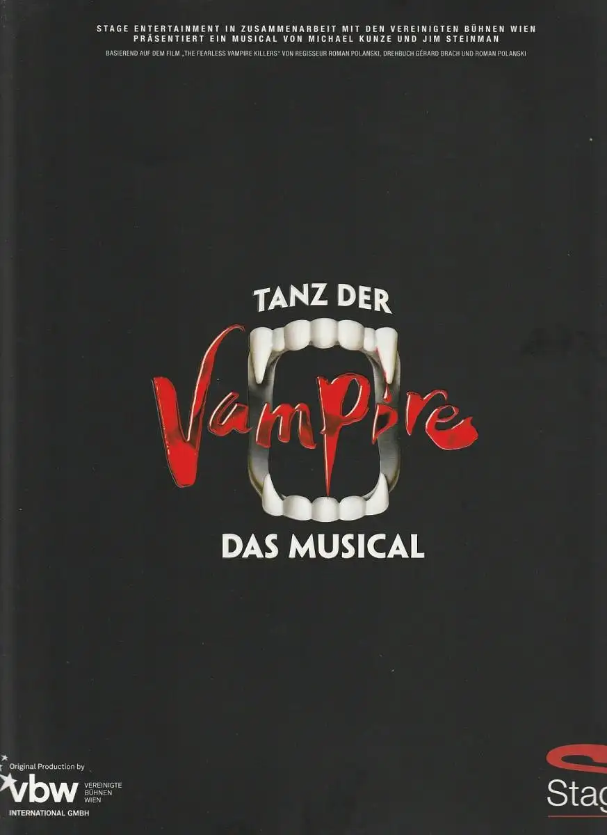 Music & Additional Material: Jim Steinman. Direction: Roman Polanski. Book & Lyrics: Michael Kunze. Choreographie: Dennis Callshan. Besetzung 9. Februar 2019: Thomas Borchert, Diana Schnierer, Raphael Groß, Sebastian Brandmeir, Lukas Witzel, Sara Jane Checchi, Christian Funk, Dawn Bullock, Arvid Johannson, u.a. - Theaterprogramm, Opernprogramm, Ballettprogramm, Musicalprogramm, Konzertprogramm, Theatermemorabilia, Programmhefte Sammlung, deutsche Theatergeschichte.