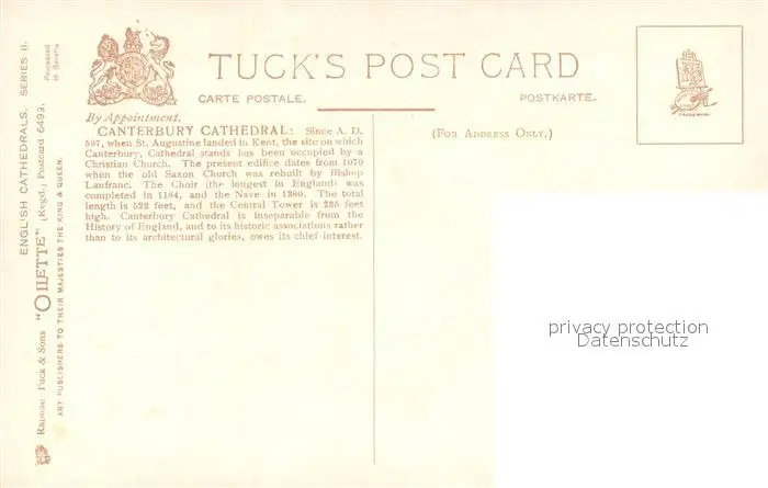Verlag_Tucks_Oilette_Nr. 6499 Canterbury Cathedral postalisch nicht gelaufen 1921-1965 Erhaltung siehe scans [PaolaD17] PaolPID1