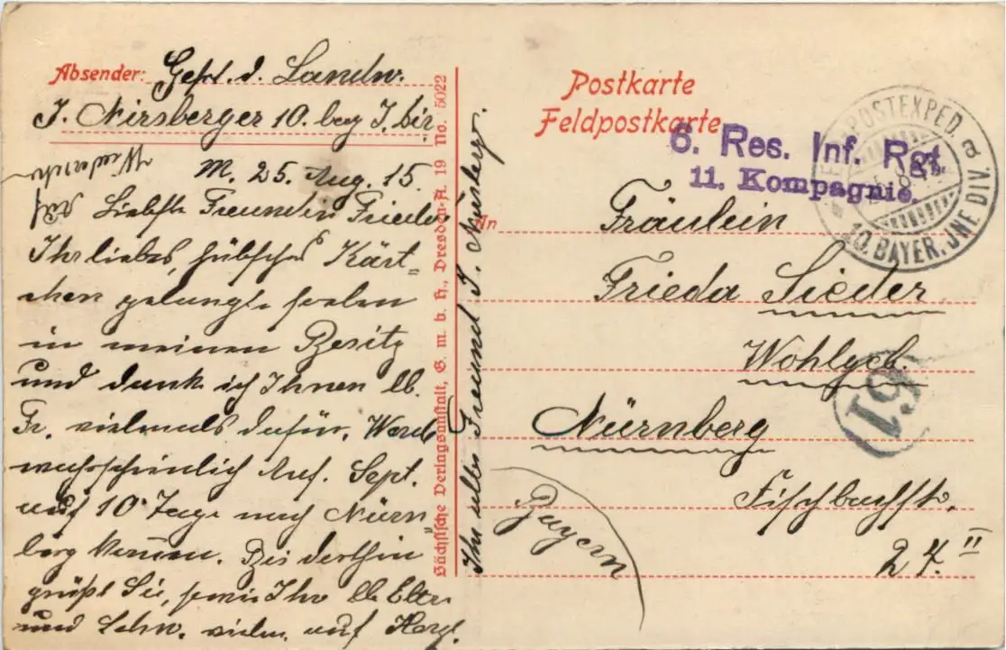 Vermittlungsstelle einer Armeefernsprechleitung - Feldpost 6. Res Inf. Rgt -651190