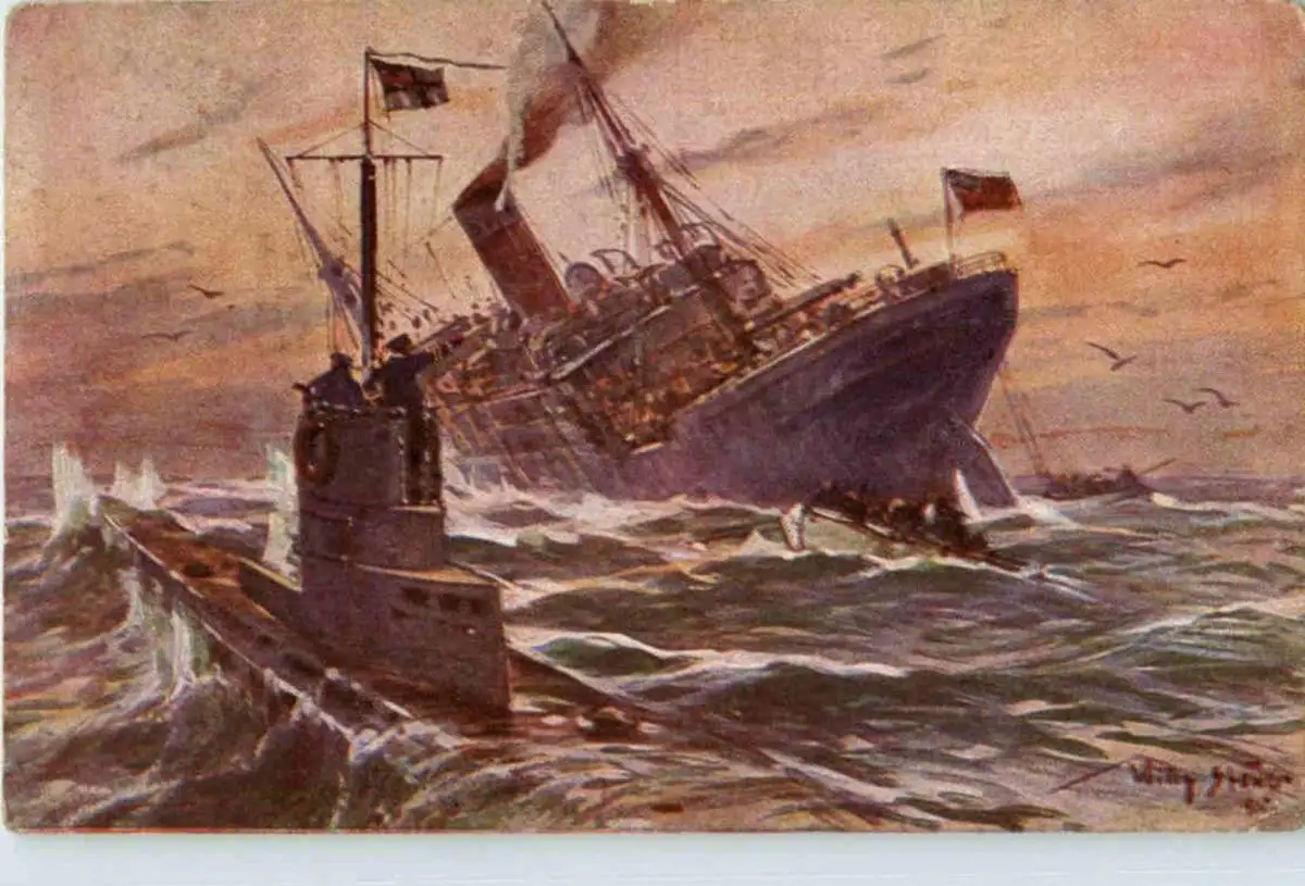 Vernichtung eines engl. Handelsdampfers durch ein deutsches Uboot -88556
