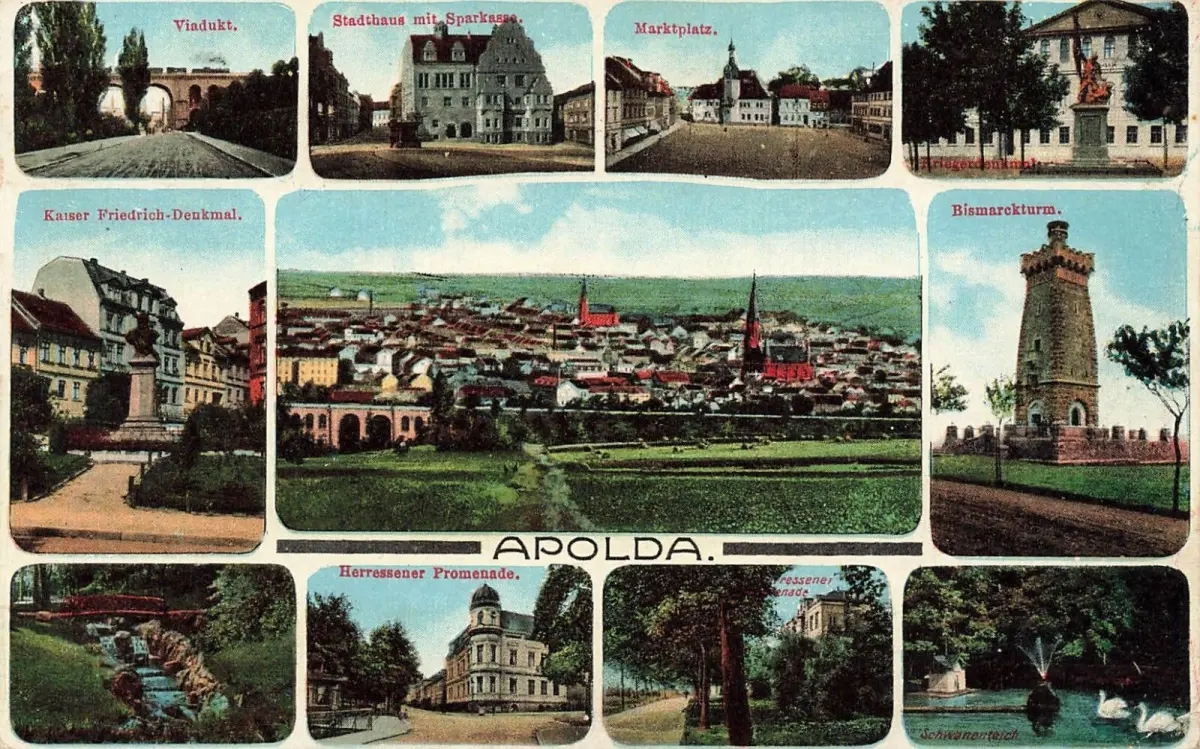 Viadukt, Stadthaus und Denkmal Apolda Thüringen Panorama-Postkarte AK 1914