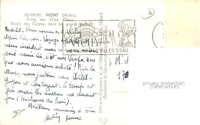Vichy_Allier Bassin des Cygnes dans les grands parcs Vichy Allier postalisch gelaufen 1921-1965 Erhaltung siehe scans [WerneD78] WernPID7
