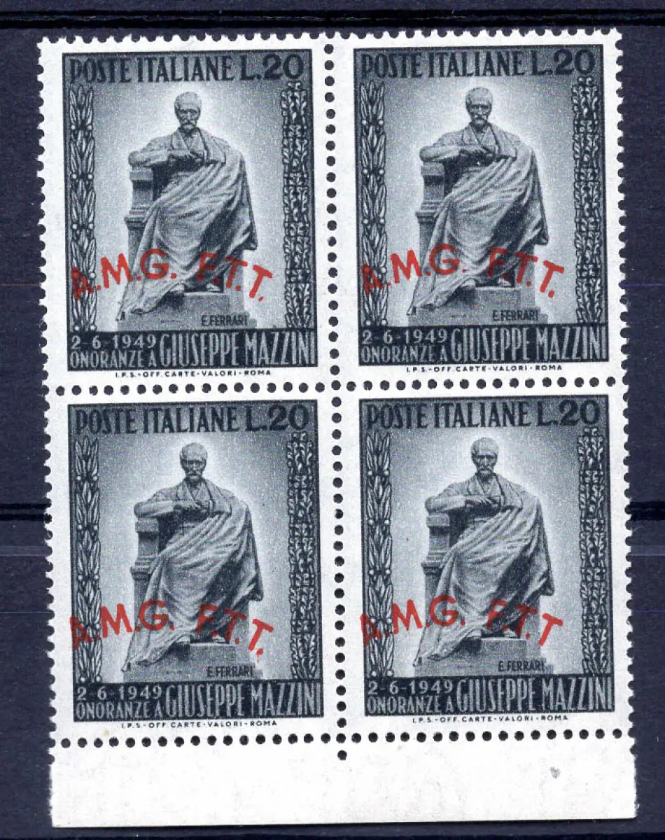 Mazzini Viertelsorte Nachdruck links verschoben ** - Mazzini Nr. 47a Viertel b. von f. mit links verschobenem Aufdruck, davon ein Exemplar ohne Punkt nach dem letzten T (Posiz. 56) - Ungewöhnlich für Fachmann Nr. 1013/20