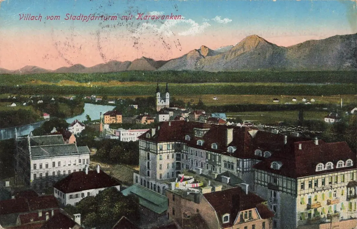 Villach vom Stadtpfarrturm mit Karawanken Österreich Postkarte AK 1917
