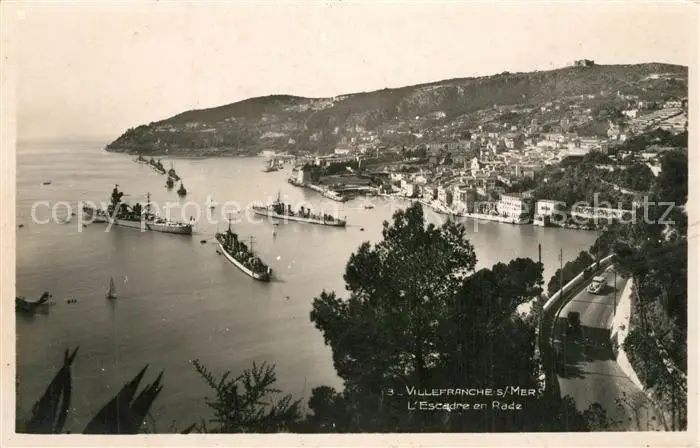 Villefranche-sur-Mer Panorama Escadre en Rade Villefranche-sur-Mer postalisch nicht gelaufen 1921-1965 Erhaltung siehe scans [FriedD77] Frierer