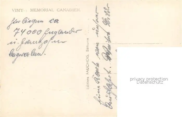 Vimy Memorial Canadien Vimy postalisch nicht gelaufen 1921-1965 Erhaltung siehe scans [WerneD78] WernPID7