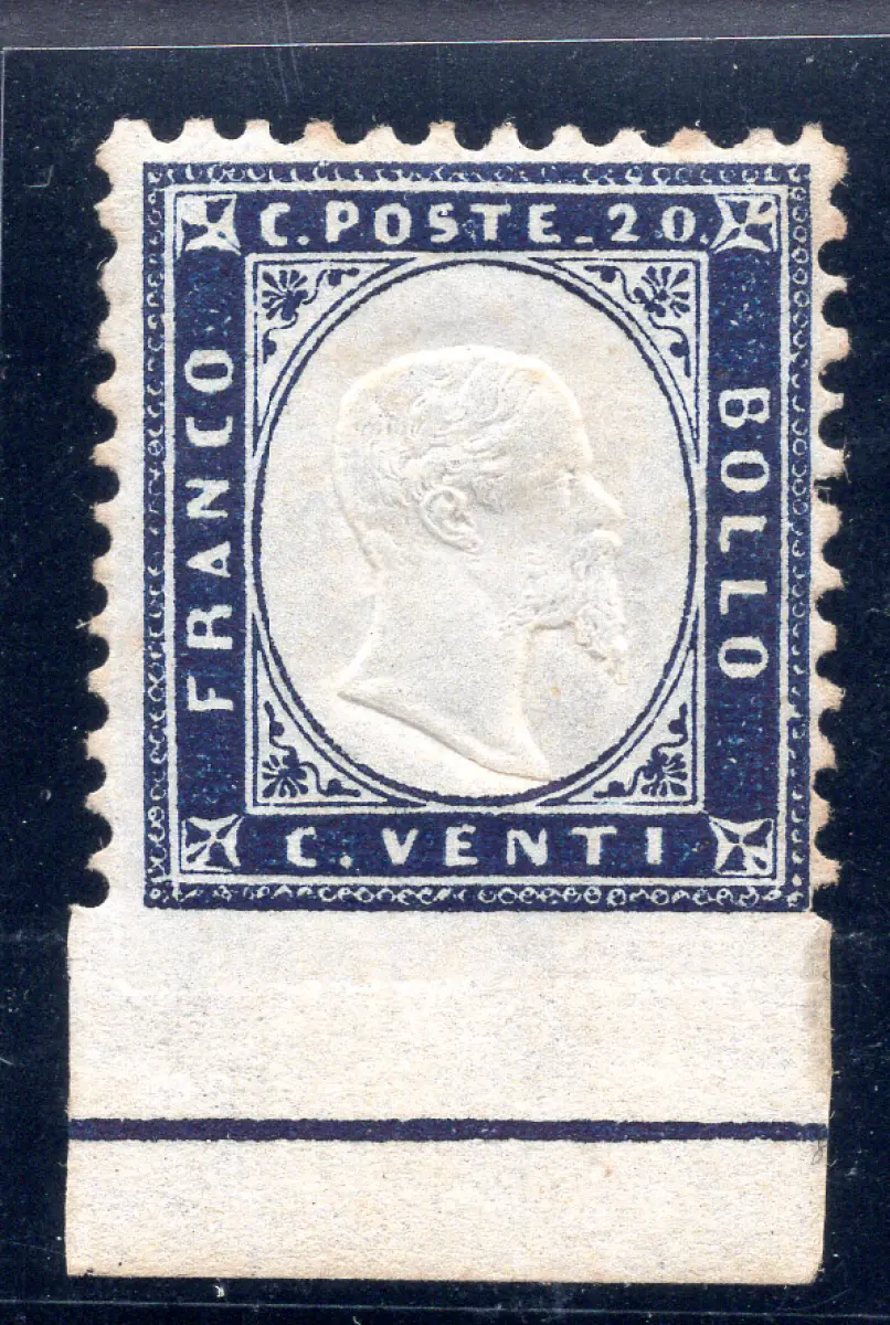 Vitt. Emanuele II. Cent. 20 Sorten ungezähnt unten Vollgummi - Vitt. Emanuele II. Cent. 20 n. 2l ungezähnt am unteren Vollblattrand mit Rahmenlinie - kleiner Vergilbungspunkt - Gebraucht Nr. 229/6