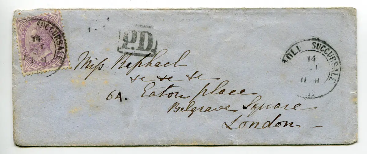 Vitt. Emanuele II. Cent. 60 für das Ausland Umschlag - Vitt. Emanuele II. Cent. 60 Nr. 21 isoliert auf kleinem Umschlag von Neapel nach London am 14. September 1865 - neben der Ann. P.D. im Rechteck - mittelmäßige Qualität - Nr. 1005/OUTLET