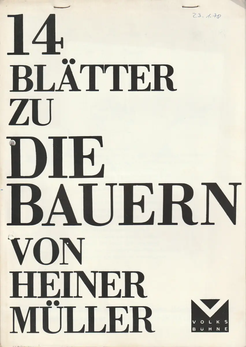 Volksbühne am Luxemburgplatz, Benno Besson, Irene Böhme, Bernd Frank: Programmheft 14 BLÄTTER Zu DIE BAUERN VON HEINER MÜLLER Spielzeit 1975 / 76.