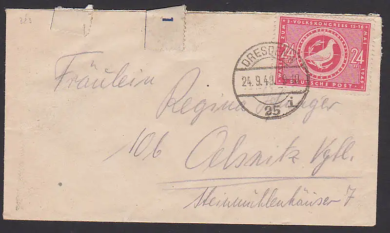 Volkskongress 1949, Friedenstaube, Fernbrief 24.9.49 (323)