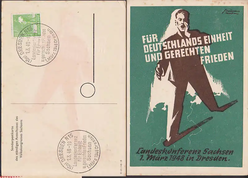 Volkskongresss Sachsen, Landeskonferenz Künstlerkarte G. Naumann Dresden SST. 1.3.48