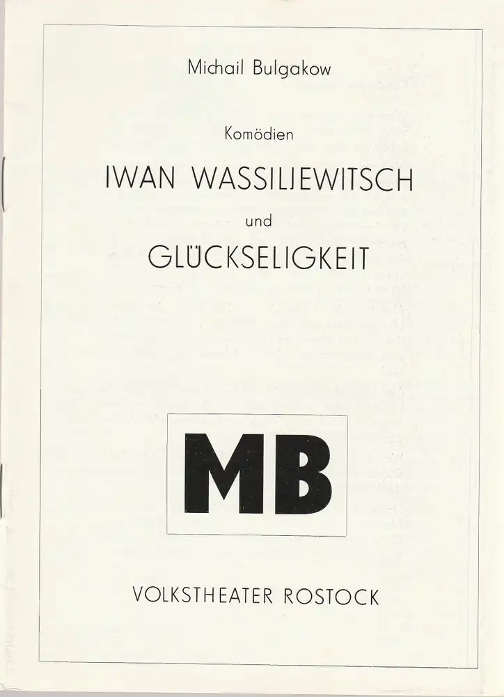 Volkstheater Rostock DDR, Ekkehard Prophet, Portia Uhlitzsch: Programmheft Michail Bulgakow: IWAN WASSILJEWITSCH und GLÜCKSELIGKEIT Premiere 8. April 1988 Spielzeit 1987 / 88.