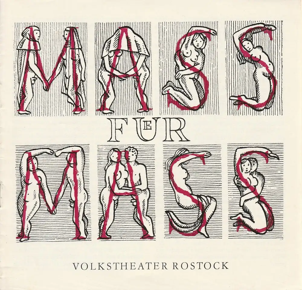 Measure for Measure. Übersetzung und Fassung von Maik Hamburger und Adolf Dresen. Inszenierung: Peter Radestock. Ausstattung: Klaus Weber. Musik: Wolfgang Brettschneider. Mitwirkende: Petra Gorr, Georg Haufler, Christine Reinhardt, Hans-Jürgen Kühnert, Eckehart Atzrodt, u. a. - Theaterprogramm, Opernprogramm, Ballettprogramm, Musicalprogramm, Konzertprogramm, Theatermemorabilia, Programmhefte Sammlung, deutsche Theatergeschichte.