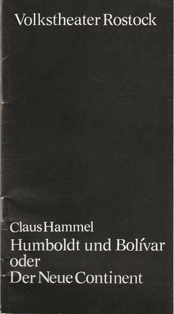 Volkstheater Rostock, Hanns Anselm Perten, Eva Zapf, Georg Hülsse: Programmheft Uraufführung Claus Hammel HUMBOLDT UND BOLIVAR Premiere 20. Oktober 1979 Großes Haus Spielzeit 1979 / 80.