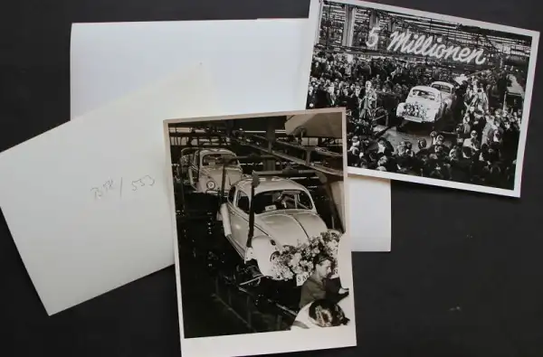 vier VW Werksfotos "5 Millionen Volkswagen"