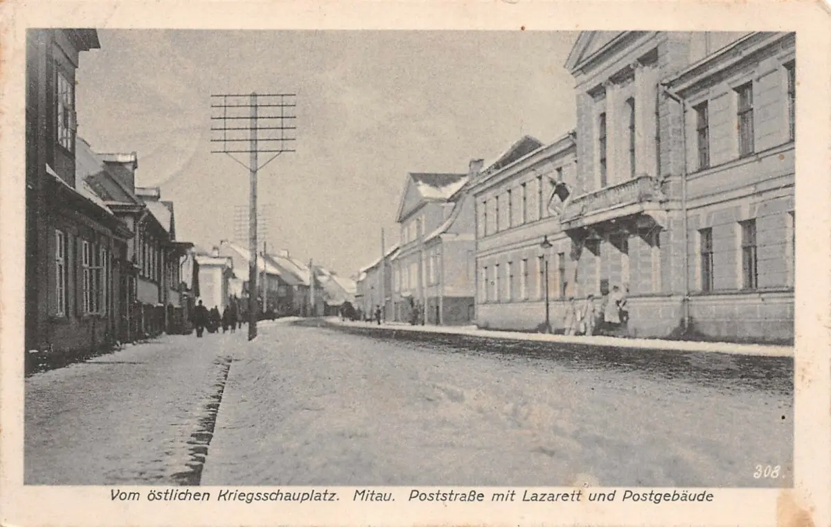 Vom östlichen Kriegsschauplatz Mitau Poststr. Lazarett Postgeb. Feldpost AK 1917