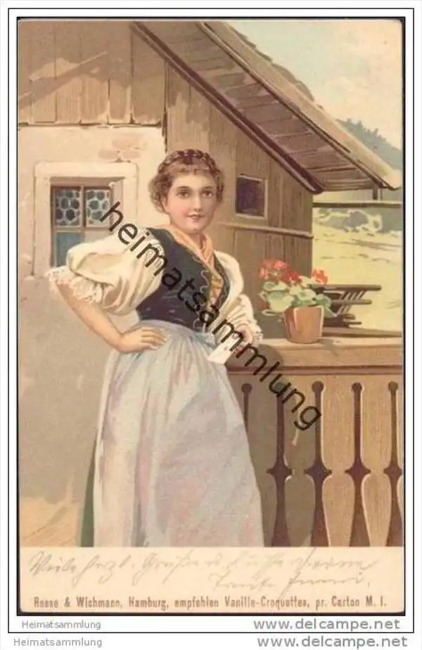 Vom schönen Land Tirol - Meissner & Buch - Werbekarte von Reese & Wichmann Hamburg für Vanille-Croquettes