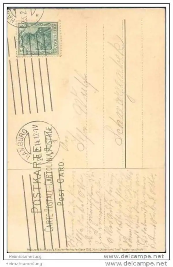 Vom schönen Land Tirol - Meissner & Buch - Serie 1292 - Werbekarte von Reese & Wichmann Hamburg für Vanille-Croquettes (E1198) gel. 1914