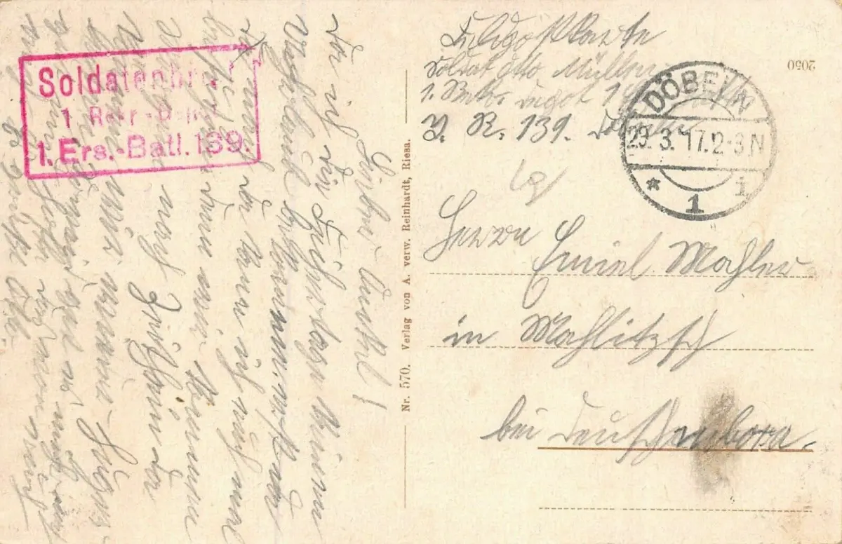 Rückseite: gelaufen 1917
