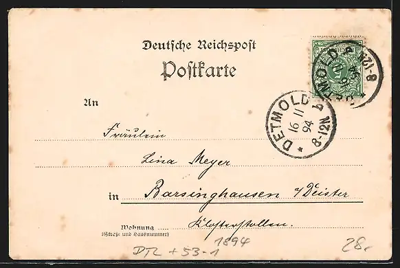 alte Ansichtskarte, gelaufen 1894, Eckknick re. oben, guter Zustand