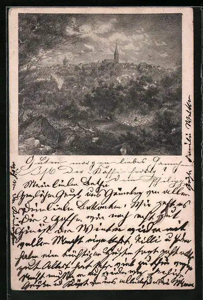 Vorläufer-AK Grünberg /Hessen, 1888, Blick über lichtes Buschland zur Stadt