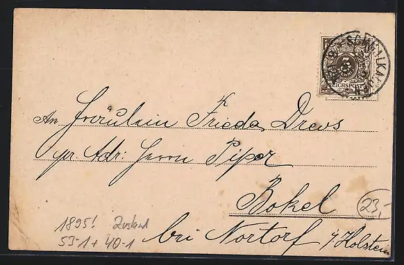 gelaufen 1895, Eckknick re. unten, guter Zustand