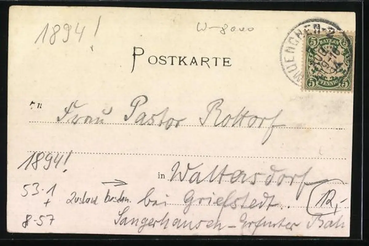 alte Ansichtskarte, gelaufen 1894, li. beschnitten