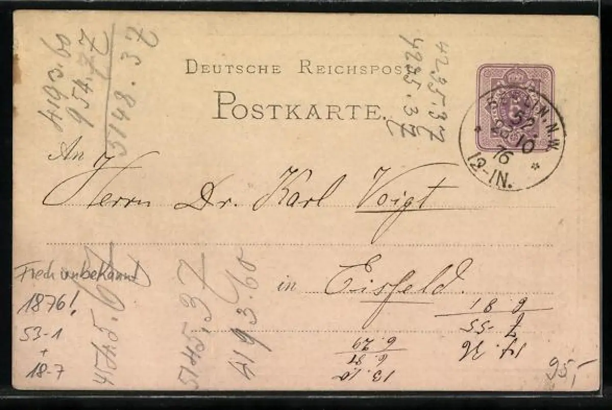 alte Ansichtskarte, gelaufen 1876, guter Zustand
