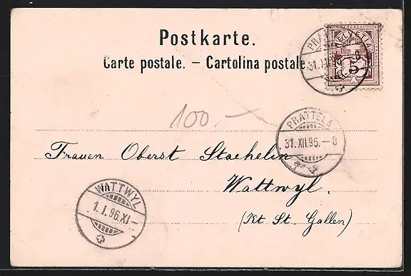 gelaufen 1895, Bugspur mittig, Eckknick li. oben, guter Zustand