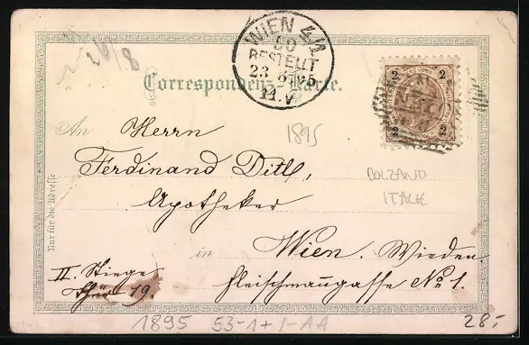 gelaufen 1895, Eckknick li. oben, guter Zustand