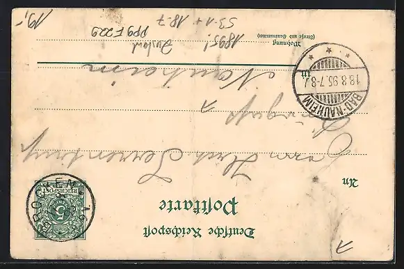gelaufen 1895, Bugspur mittig vertikal, Einriss unten li., guter Zustand