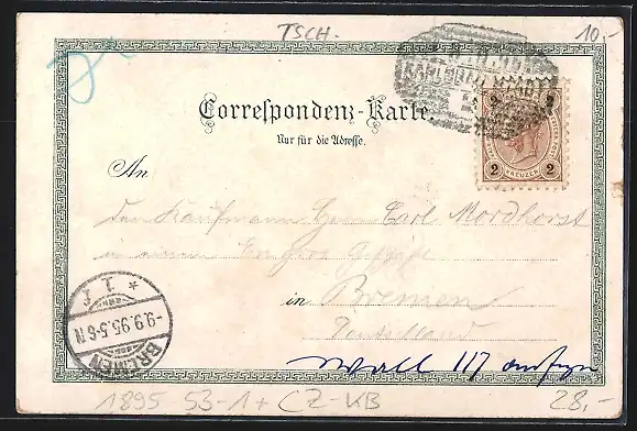 gelaufen 1895, Eckknick li. oben, guter Zustand