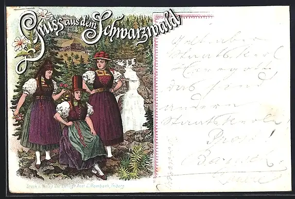 Vorläufer-Lithographie Drei Frauen in Schwarzwälder Tracht, 1895