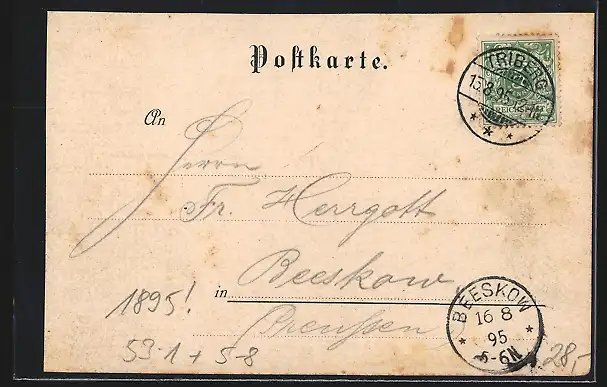 gelaufen 1895, Eckknick li. unten, oben leicht beschnitten