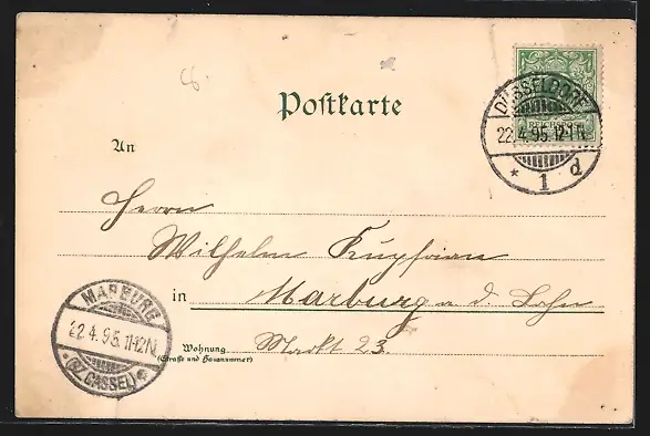 gelaufen 1895, Stecknadellöcher li. oben u. unten u. re. oben, guter Zustand