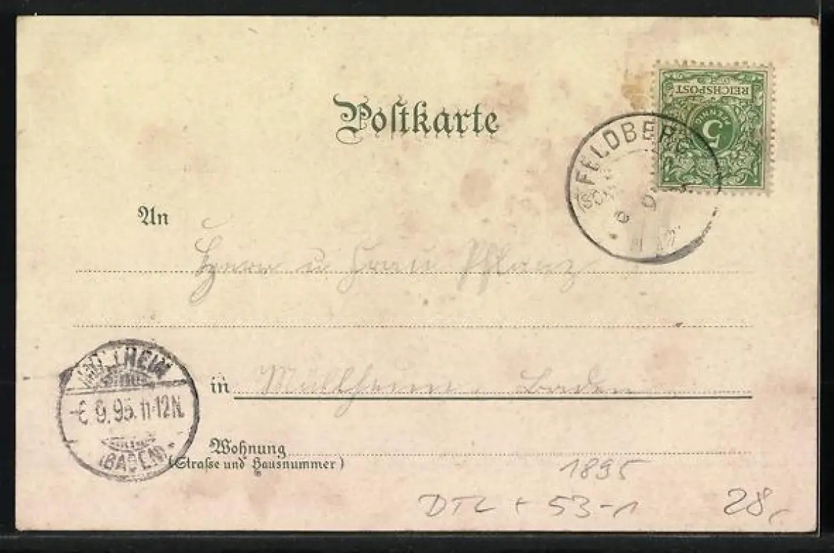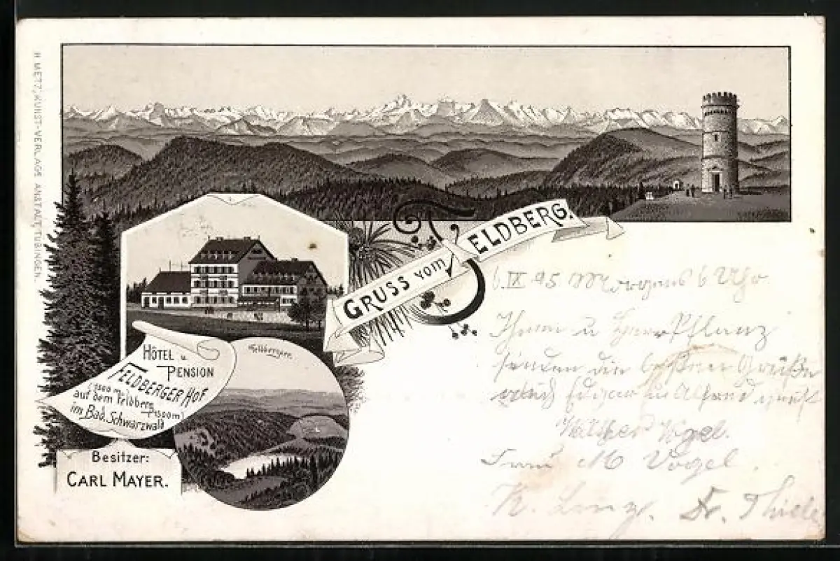 Vorläufer-Lithographie Feldberg /Schwarzwald, 1895, Hotel-Pension Feldberger Hof, Bes. C. Mayer, Feldbergsee